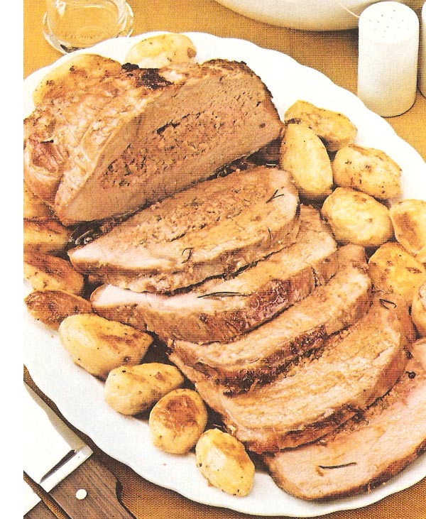 - Mettetevi il composto aiutandovi con un cucchiaio, cucite il pezzo alle due estremità e legatelo con uno spaghino per mantenerlo in forma durante la cottura. Accomodatelo nel recipiente in cui lo cuocerete; aggiungete l'olio, l'aceto, il sugo di limone, poco sale, l'aglio e la cipolla affettati, coprite e lasciate riposare 6 ore o più, girando la carne un paio di volte.