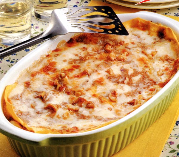 - Procedete a comporre le lasagne: ungete una pirofila con l’olio, disponete uno strato di lasagne scottate in acqua bollente salata.